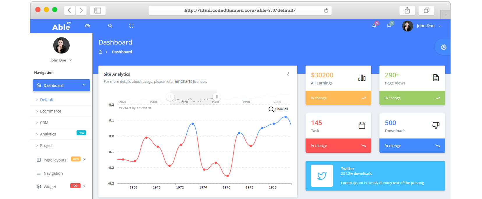 Able 7.0 is one of the finest Admin dashboard template in its category. Premium admin dashboard with high end feature rich possibilities.
